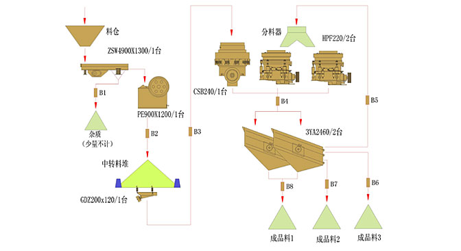 該公司為實力雄厚(hou)的(de)大(da)型石料有限(xian)公司 從我司購入PE900*1200顎破(po)、HPC220圓(yuan)錐(zhui)破(po)兩套、CSB240B圓(yuan)錐(zhui)破(po)、ZSW490*130給料機、GZD*120給料機兩臺(tai)、3YA2160振動篩兩臺(tai)